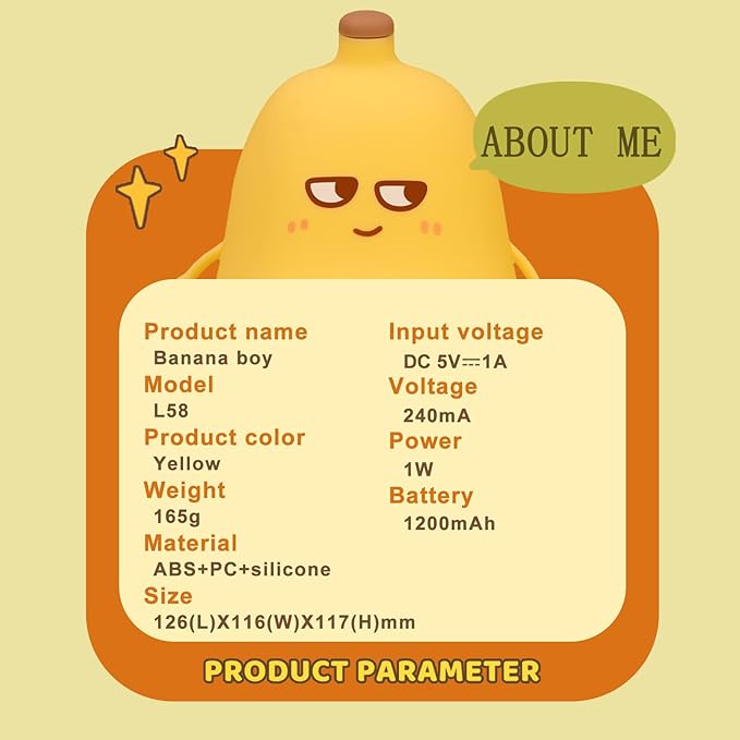 • Adorable Design: Shaped like a cute banana, this night light adds a fun and whimsical touch to any child's room.