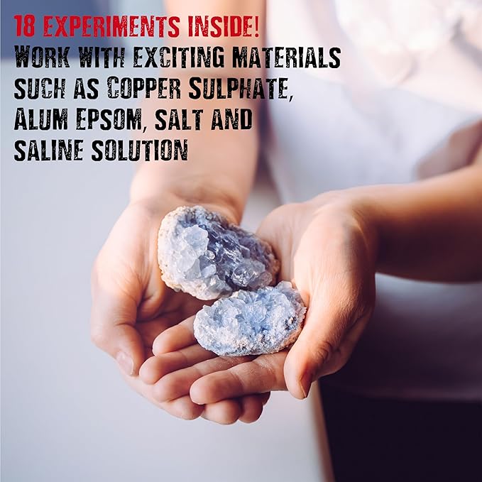 • EDUCATIONAL HANDS ON SCEINCE: introduce kids into the world of STEM/ steam research and analytical thinking through each science experiments: The experiments will illuminate kids on how crystals are formed and which chemical materials are required. Kids will be working with exciting materials like Copper Sulphate, Alum, Epsom Salt & Saline Solutions, to create different types of funky homemade crystals. How exciting is that!