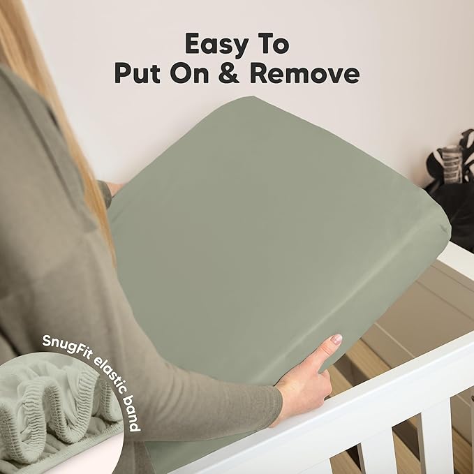 • High Quality Elastic Band - Our organic cotton crib sheets, use premium elastic SnugFit Band seamlessly concealed to ensure these standard crib sheets stay in place securely for safe and soothing sleep.