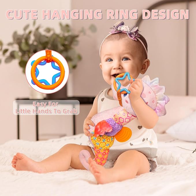Baby Toys 0-6 Months,Infant Musical Seahorse Stuffed Animals Sensory Toys with Bright Colors,Multiple Textures,Rattles & Crinkle Sound Paper,Soft Tummy Time Toy for Newborn Boys Girls 0-12 Months-Pink
