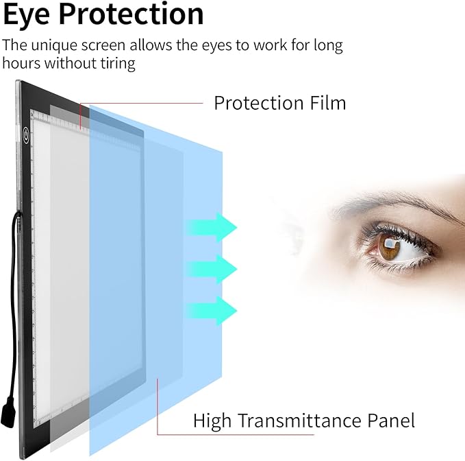 • 【 Wide Application 】This Super Bight light box tracer ideal for stenciling, art diamond painting, 2D animation, calligraphy, embossing, scrapbooking, tattoo transferring, sketching & drawing, streaming, sewing projects, stained glass, quilting X-ray viewing etc. Providing you a best gift for Christmas, birthdays or other holidays. Please feel free to contact us if you have an question, replacement is available if there is any quality issue.