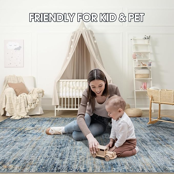 • 【Versatile 5x7 Area Rug:】 The edges of large area rug can stay nice & flat and do not roll up on the corners. Washable area rugs surfaces stand up to everyday wear and tear and can be held up wonderfully after a long time of use with no pilling. It will be a good choice for the living room, bedroom, dorm, dining room, hallway, nursery, office, farmhouse or any high-traffic area.