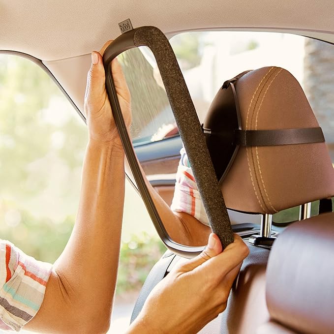 • Extra-large adjustable car mirror lets you see baby while you drive – mirror measures 11.25” x 8”
