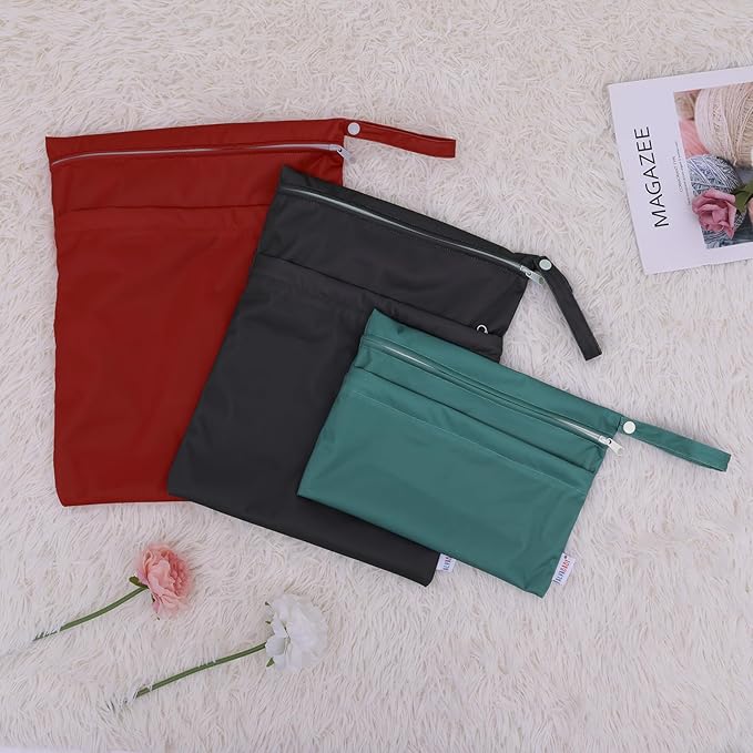 ALVABABY 3 Cloth Diaper Wet Dry Bags Waterproof Reusable with Two Zippered Pockets Travel Beach Pool Daycare Soiled Baby Items Yoga Gym Bag for Swimsuits or Wet Clothes Small medium Large 3L-SML02