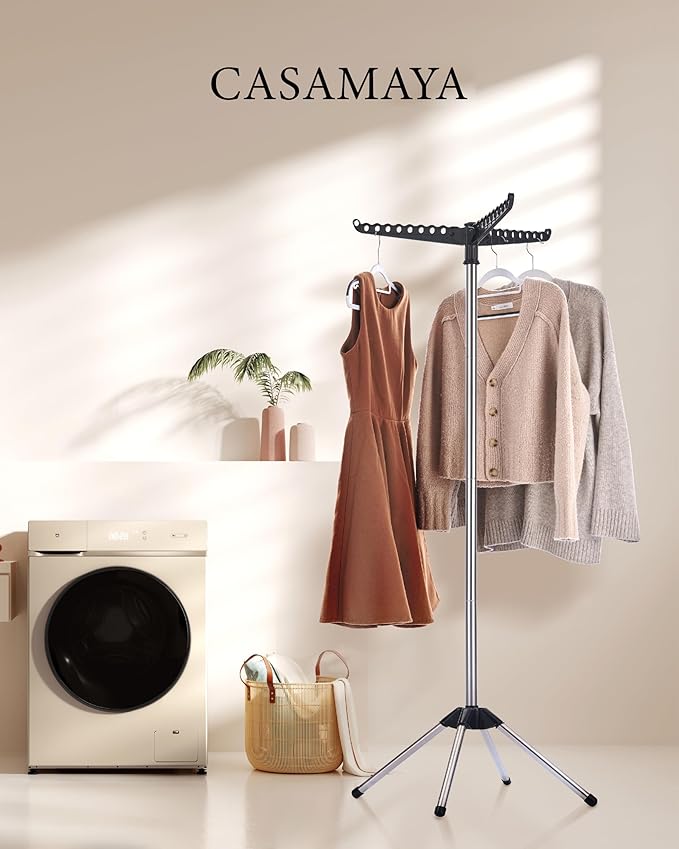 • [Strong and Durable] This clothes drying rack is made of thick stainless steel tubing, rust-proof and sturdy, four support feet design provides the best stability, overall weight capacity 33 pounds