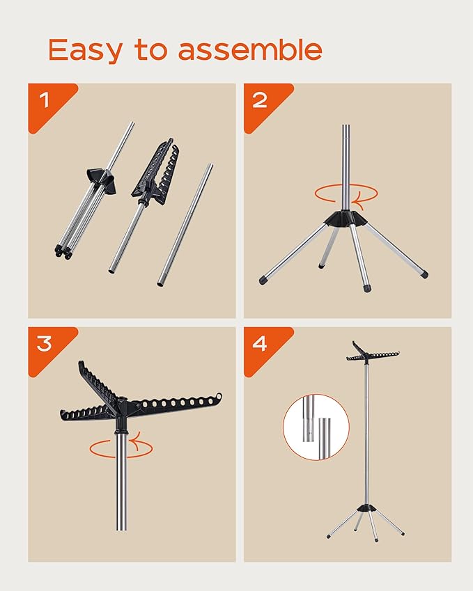 • [Easy to assemble and carry] This drying rack can be installed in just four steps and can be completed within three minutes. The easy to disassemble and assemble design makes it possible for you to carry it with you when you need to dry your clothes on a camping trip.