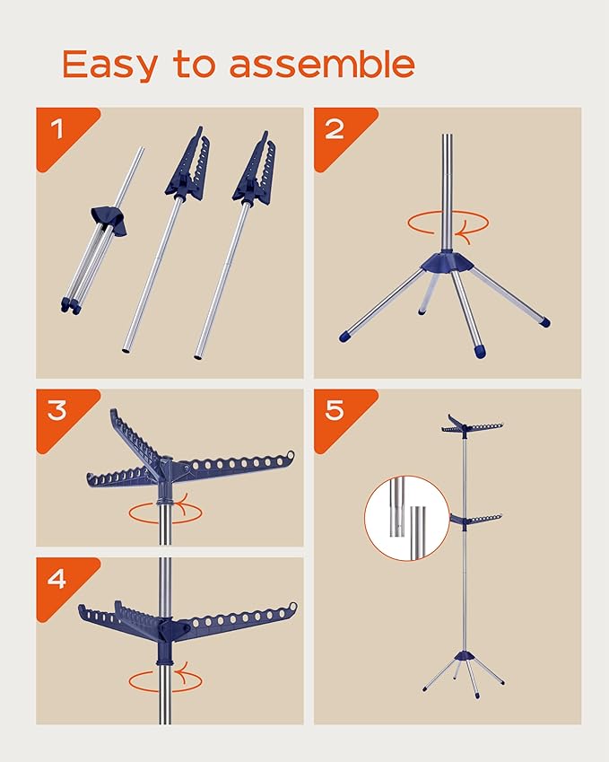 • [Easy to assemble and carry] This drying rack can be installed in just four steps and can be completed within three minutes. The easy to disassemble and assemble design makes it possible for you to carry it with you when you need to dry your clothes on a camping trip.