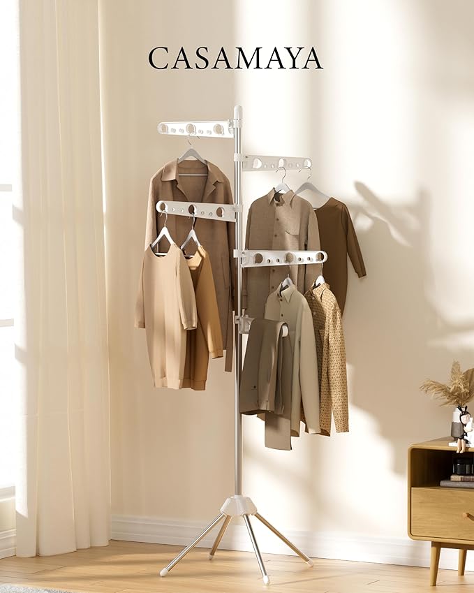 • [Height-adjustable and Rotatable Clothes Rack] The drying rack has 5 hanging rods, each of which is height-adjustable, so you can adjust it freely according to the length of your clothes. Equipped with a 360-degree swivel design, this laundry drying rack provides you with the convenience of hanging and accessing your clothes.