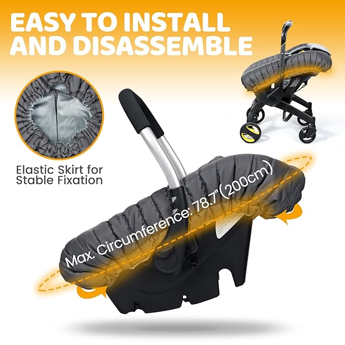 • UNIQUE DESIGN & UNIVERSAL FIT: The "Shower Cap" design style in the back allow parents to put the elastic bag on or fix it around the infant car seats, travel systems etc, which means it can fit on every car seats, travel system car seats etc