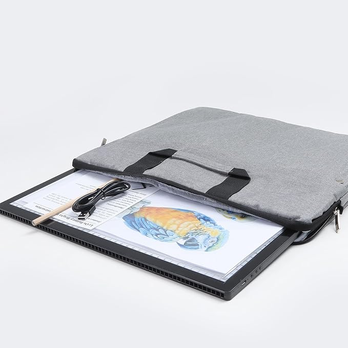 • <๐—–๐—ฎ๐—ฟ๐—ฟ๐˜† ๐—•๐—ฎ๐—ด๏ผ†๐—˜๐—ฎ๐˜€๐˜† ๐—–๐—ฎ๐—ฟ๐—ฟ๐˜†๐—ถ๐—ป๐—ด ๐——๐—ฒ๐˜€๐—ถ๐—ด๐—ป>: The light tracing pad, with its dimensions of L16.2''ร—W12.1''ร—H0.4'', ensures portability, easily fitting into bags or backpacks for convenient transport. Additionally, it comes with carrying case upon purchase, offering added convenience for storage and travel, making it convenient for artists, designers, and students to carry it wherever they go.