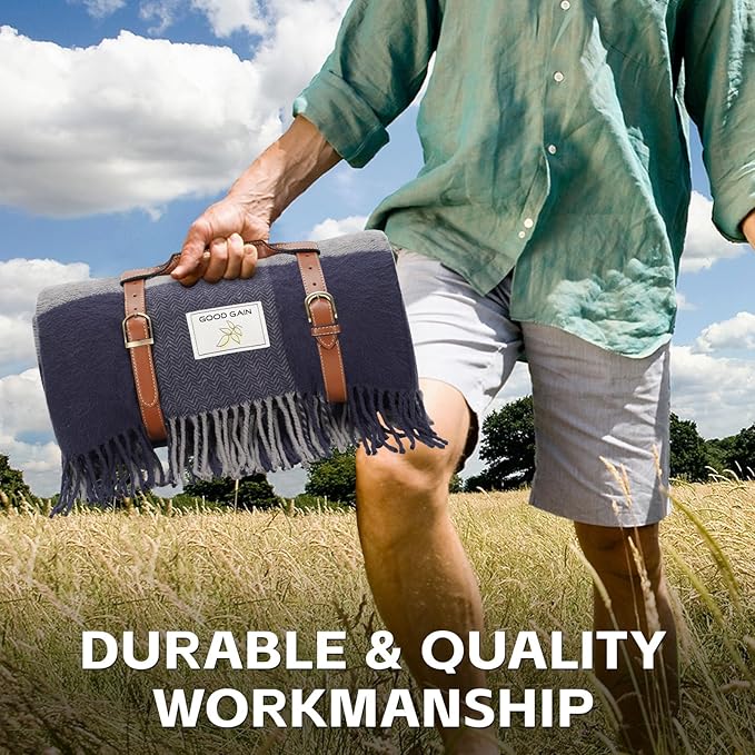 • HANDY CARRIER DESIGN & PERFECT GIFT-The picnic blanket waterproof features a special exclusive design PU handle and eye-catching luxurious straps with an adjustable bronze metal buckle for easy carrying. It also makes a wonderful gift for any occasion, such as housewarmings, engagements, weddings, anniversaries, retirements, birthdays, Christmas, holidays, or as a hostess gift.