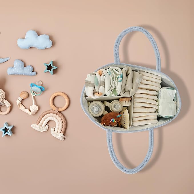 • Flexible and Portable Diaper basket with removable divider: Featuring handles for effortless transportation, our diaper change caddy includes removable dividers for personalized organization. Adjust the internal layout as needed to accommodate various baby items. Move seamlessly from room to room or take diaper organizer caddy on the go for convenient access to baby essentials.