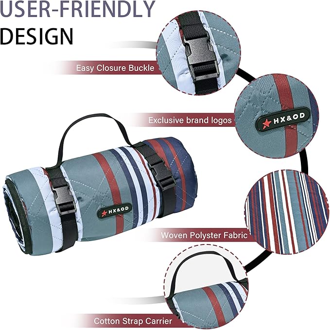 • ☀ 【Waterproof & Machine Washable】Outdoor picnic blanket is super easy to clean due to its durable and waterproof backing, easily shake & wipe off dirt, mud, wet grass, and beach sand. And you could put it into washing machine to save your time and free both hands.