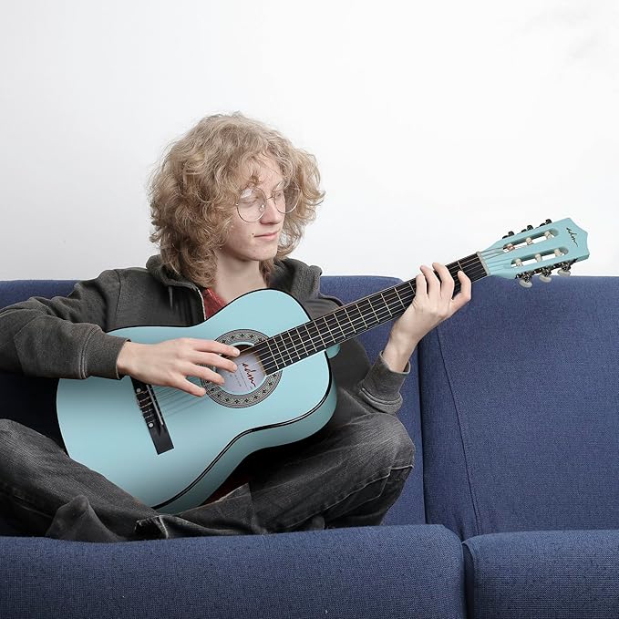 • TOP QUALITY MATERIALS: Our 36 inch acoustic classical guitar top, back, and sides are made of Laminated basswood; the Maple Rosewood fingerboard and bridge provide a comfortable playing feel; The three nylon strings and three steel strings design will make it your favorite musical instrument
