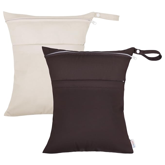 ALVABABY 2pcs Cloth Diaper Wet Dry Bags Waterproof Reusable with Two Zippered Pockets Travel Beach Pool Daycare Soiled Baby Items Yoga Gym Bag for Swimsuits or Wet Clothes 2LM05