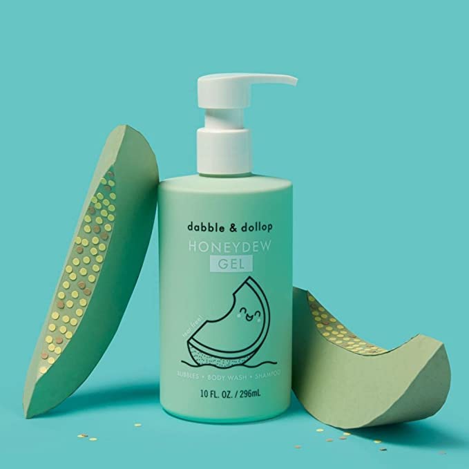 Dabble & Dollop Honeydew Melon Body Wash & Shampoo – 3-in-1 Natural Bubble Bath for Kids, Made in USA, No Parabens or Sulfates, Vegan, Gluten-Free, Tear-Free (10oz, Pack of 2)