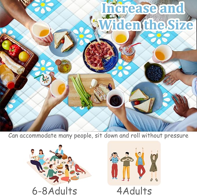 • 🚵‍♀️⛺🏖️【Larger and Thicker Design】This waterproof blanket can accommodate 6-8 people and can be used as a beach blanket,It create a designated space for family and friends to gather, eat together, play games, or simply enjoy each other's outdoors. They promote a sense of togetherness and make outdoor experiences more memorable and comfortable.