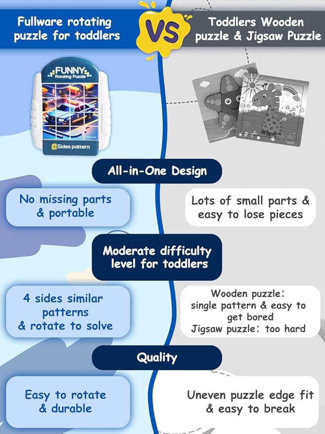 • A HANDY TOY FOR OUTINGS - Whether in the car or at a restaurant, our compact Rotating Puzzles can be carried along and keep children quiet and occupied. Moreover, there is no risk of missing pieces after playing with this all-in-one design puzzle!