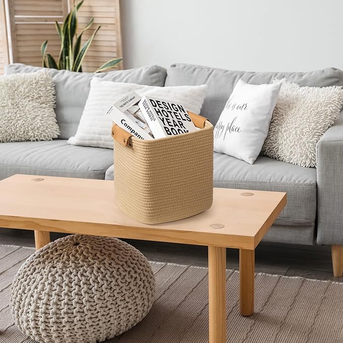 • Modern Charm: The storage cubes feature leather handles that provide comfortable grip for easy carrying. Woven storage bins are made of 100% cotton to ensure long lasting use. The contrast between the cotton and leather creates a stylish and modern look