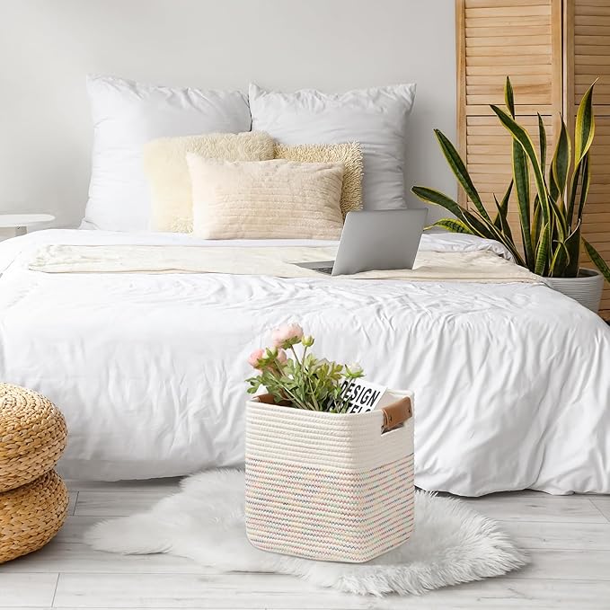 danpinera 11"x11" Storage Cubes, Soft Boho Storage Basket with Neat Stitching, 3-Pack Cube Storage Organizer, Woven Baskets for Storage in Living Room, Kids Room, Bedroom, Rainbow