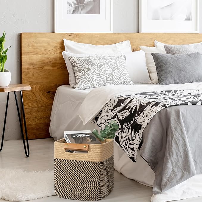 • Modern Charm: The cube storage organizer feature leather handles that provide comfortable grip for easy carrying. Woven baskets are made of 100% cotton to ensure long lasting use. The contrast between the cotton and leather creates a stylish and modern look