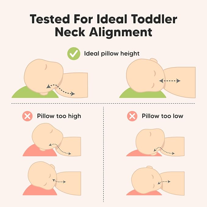• Natural Cotton - We use a natural cotton toddler pillowcase and cover, which are safe for toddlers and kids. This breathable toddler pillow is ultra-soft and suitable for all seasons. Your perfect toddler nap pillow and kids pillows for sleeping.