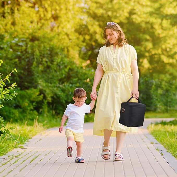 • PORTABLE WITH DETACHABLE BUCKLE: The detachable buckle design of the reusable baby bottle bag ensures you two portable carry ways, handhold or hanging on a stroller, together with soft nylon handle, let you carry the bottle bag effortlessly and comfortably.