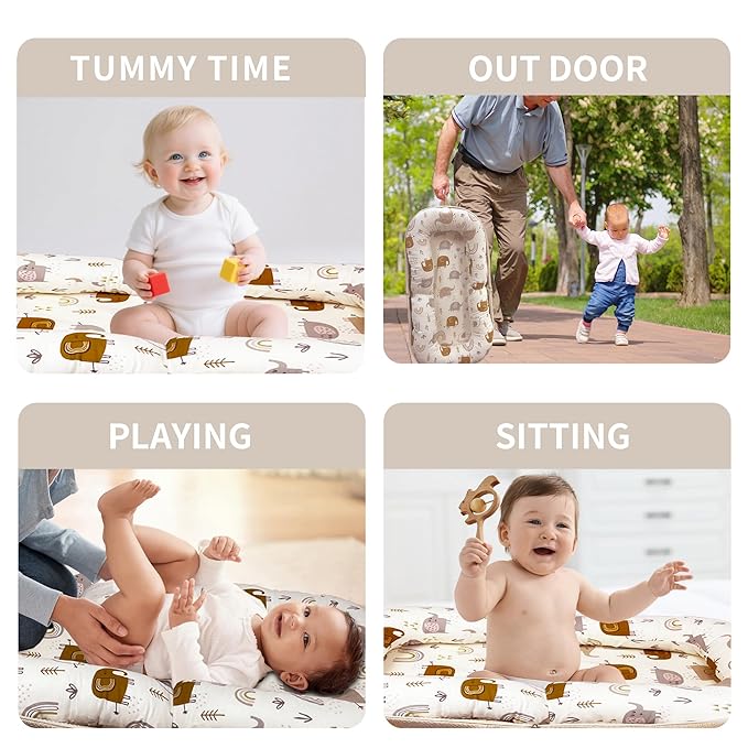 • Safe and Comfortable Design: Our baby lounger features a wrap-around design that ensures your baby's safety while providing comfort with soft, high-quality materials.