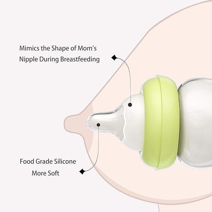 YOHKOH Natural Glass Baby Bottle with Natural Response Nipple, Newborn Anti-Colic Baby Bottles, Wide Neck Mushroom Cap Baby Bottle, Clear (Green, (5.4oz (Pack of 4))