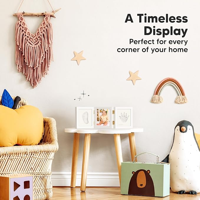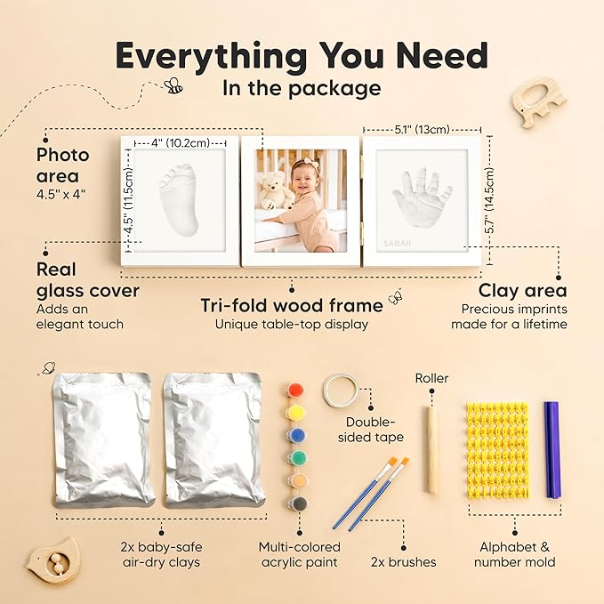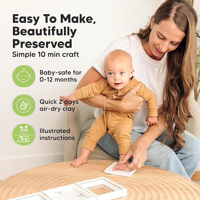 • 100% Safe Food-Grade Clay - Our baby picture frame features 100% baby-safe air-dry clay, perfect for preserving your baby prints. Our premium material ensures durability, the baby handprint and footprint maker will look flawless for years to come.