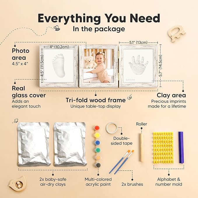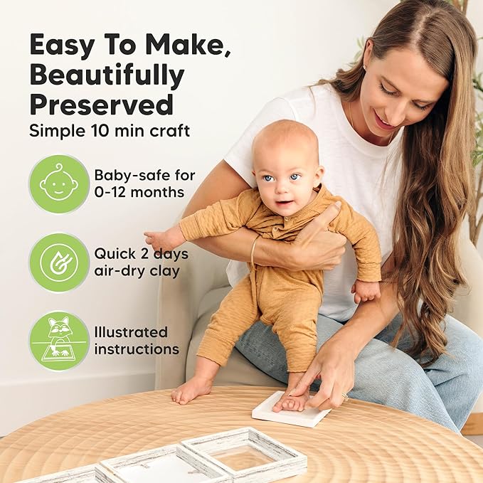 • 100% Safe Food-Grade Clay - Our baby picture frame features 100% baby-safe air-dry clay, perfect for preserving your baby prints. Our premium material ensures durability, the baby handprint and footprint maker will look flawless for years to come.