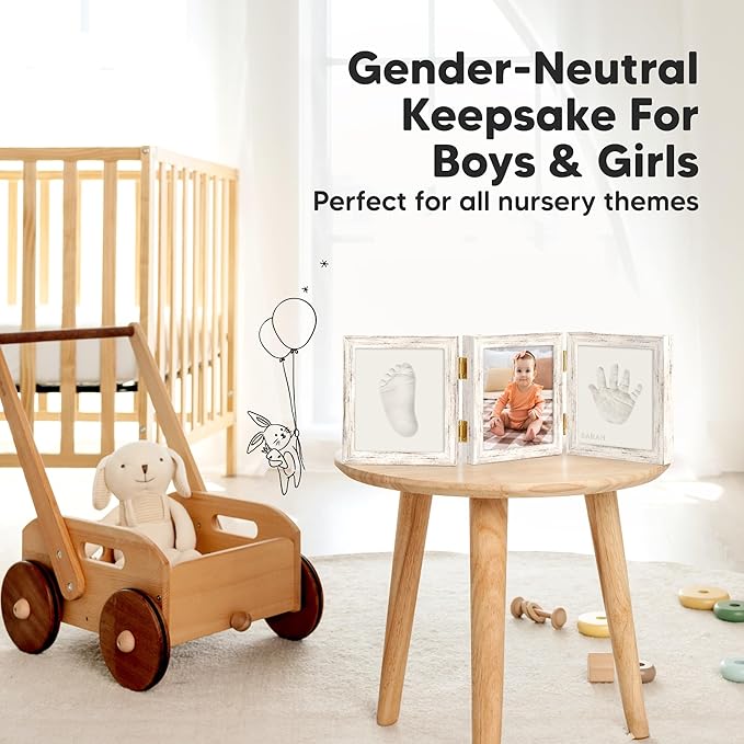 • Sturdy Wood Frame, Real Glass Cover - Our tri-fold baby handprint footprint keepsake kit maintains its pristine condition for years to come. It’s a lovely, everlasting newborn keepsake for your baby room decor. A must-have newborn baby essentials.