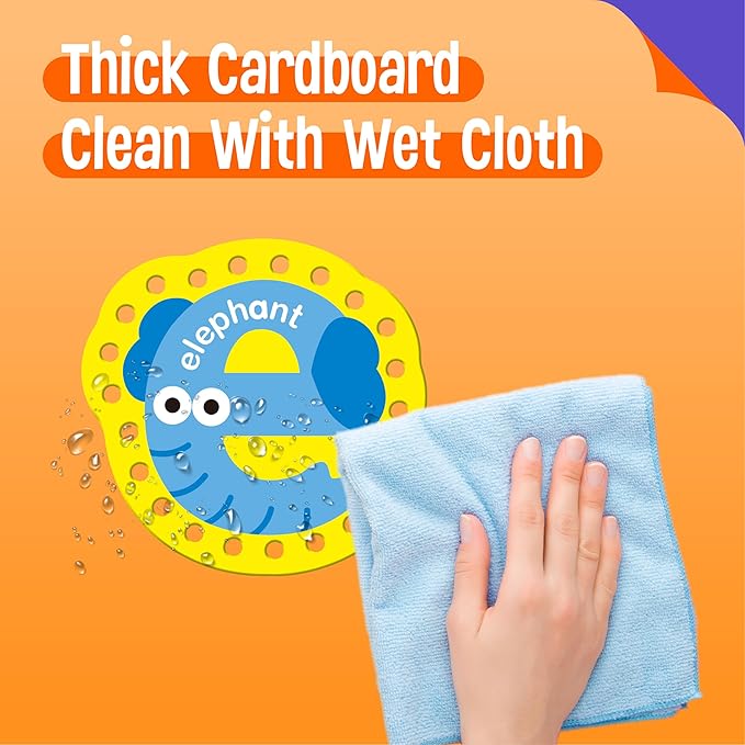 • Double-sided Printing: 26 alphabet lacing cards are double-sided printed. The front side is printed with lowercase letters with cute animals, including animals’ names, such as letter c designed in cat image with the word β€œcat”. While the back side is some basic words with related illustrations, allowing children to master alphabet and words and images at the same time. Adorable designs with vibrant color make learning fun and engaging.