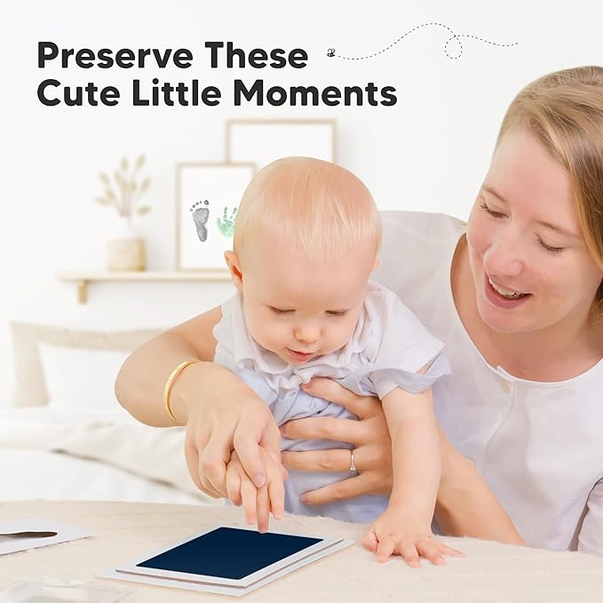 • No Mess, No Residue - Designed to create your baby's hand and footprints without leaving ink residue on your baby’s hands and feet. Our clean touch ink pads use a “zero ink contact” imprinting method to allow beautiful stamping of your baby’s hands and feet on art cards, memory book journals and other paper-based baby keepsakes. Mess free ink pad for babies.
