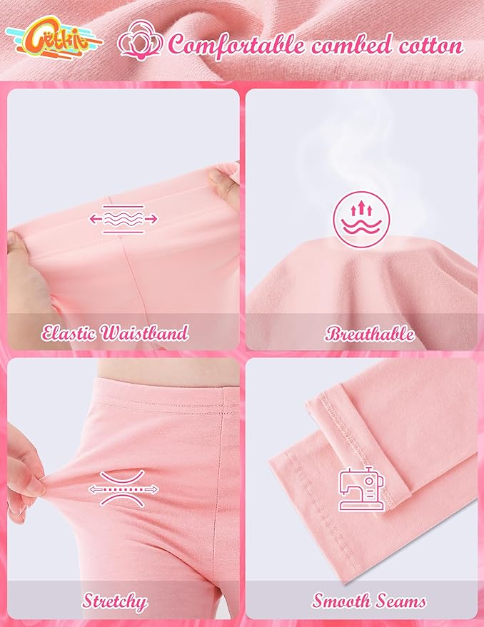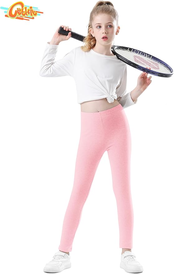 • 【High-Quality Girls' Leggings】 These girls' leggings are made of 94% polyester and 6% spandex. The fabric is stretchy, ultra-soft, and breathable, making these girls leggings very comfortable and flexible. All pink pants for girls are made from premium four-way stretch fabric, with an elastic band sewn into the waistband, which lies flat on the waist for a comfortable and good fit.