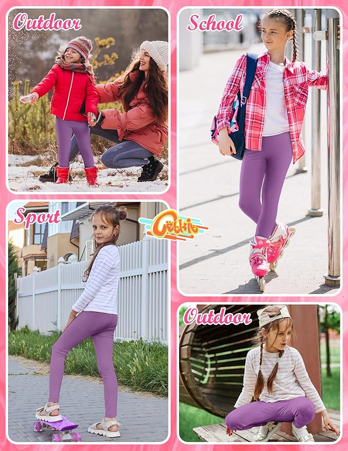 • 【High-Quality Leggings for Girls】 These girls' leggings are made of 94% polyester and 6% spandex. The fabric is stretchy, ultra-soft, and breathable, making these cotton leggings very comfortable and flexible. All leggings are made from premium four-way stretch fabric, with an elastic band sewn into the waistband, which lies flat on the waist for a comfortable and good fit.