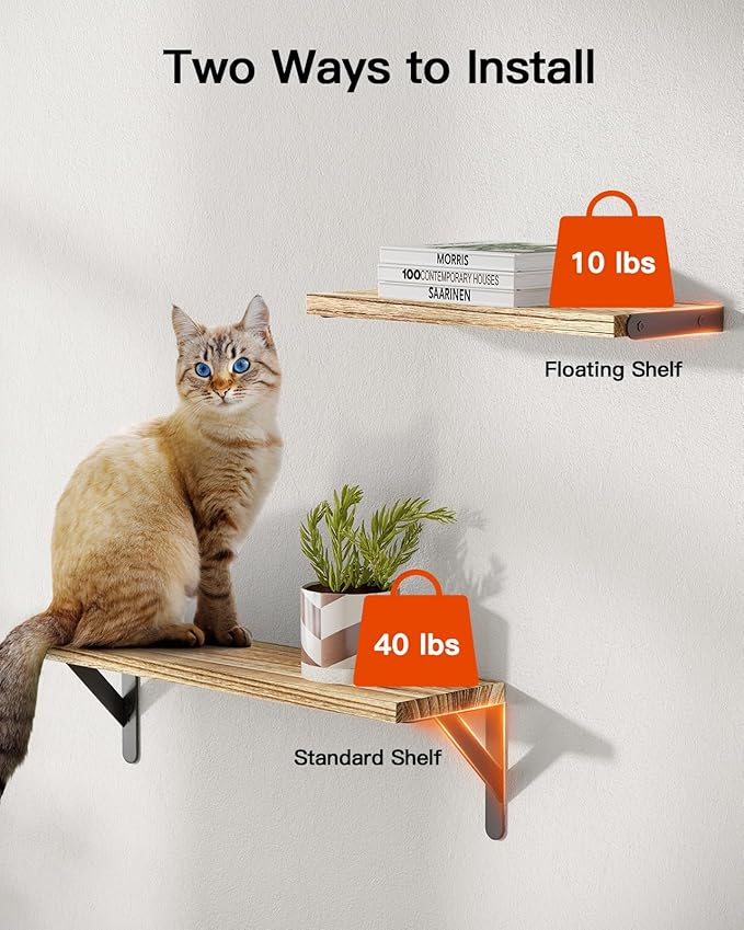• Two Ways to Install: Attach to the wall as minimalist floating shelves for wall with concealed brackets (10 lbs Max load), or standard wall shelves with brackets below to support heavier objects (40 lbs Max load).