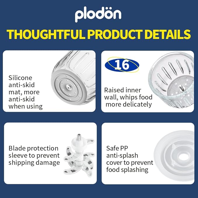 • 【What's in the Box】Baby food processor (Electric Without Battery) with 2 Glass Bowls (0.6L+0.3L)*1, baby food containers*1, silicone spoons*1, small tools*3. With the Plodon Baby Food Maker, you can say goodbye to store-bought baby food, and hello to homemade goodness. Start making healthy and delicious meals for your little one!