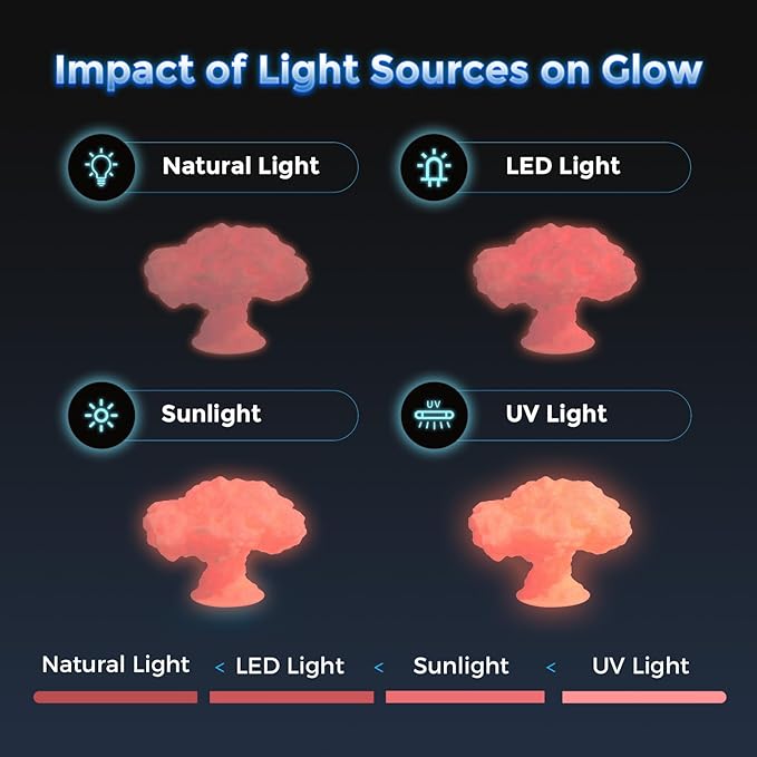 • Exceptional Glow Effect - This glow-in-the-dark PLA absorbs light and emits a soft glow in the dark. The brightness lasts for up to 5-100 minutes, with a 310% enhancement in brightness compared to standard glow-in-the-dark materials, providing a brighter and longer-lasting glow.