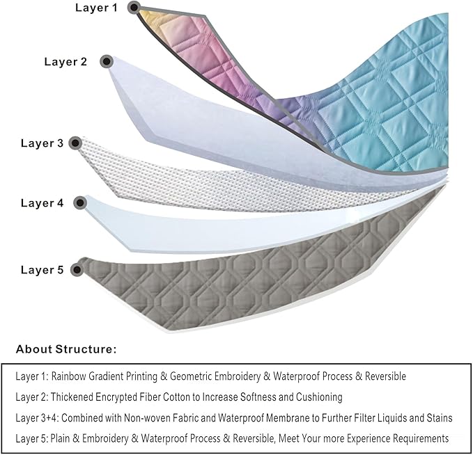 • Patchwork Rainbow Ombre Printed Dog Bed Blankets: the Second Layer Uses Thickened Encrypted Fiber Cotton to Increase Softness and Cushioning, the Thirdand Fourth Layers are Combined with Non-woven Fabric and Waterproof Membrane to Further Filter Liquids and Stains. A Multifunctional Furniture Protective Coverfor Bed / Sofa / Table / Chair / Floor / Camping... Applicable Scene: Bedroom / Living Room / Bathroom / Indoor / Outdoor...and So On...
