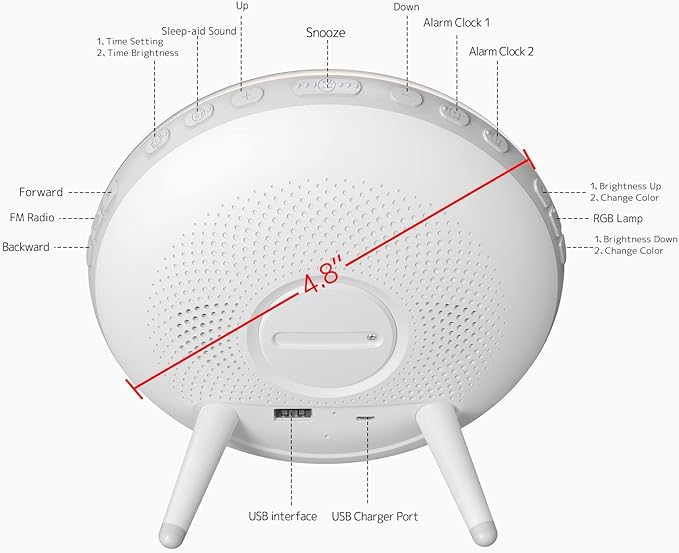 • Smart Sunrise Alarm Clock + 4 Custom Alarms (2.4GHz WiFi): Wake up naturally with gradual sunrise Simulation lighting (red to golden) that mimics real dawn, synced with soothing sounds or FM radio. Perfect for heavy sleepers & teens - no more groggy mornings