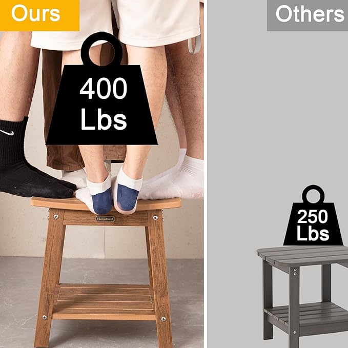 • 【Material & Size】Our poly shower bench is made of HDPS (polystyrene) with 304 stainless screws which never gets rust, this material is not easy to get rotting or crack after prolonged exposure to humidity, no splinters and no maintenance, 16 x 12.6 x 17 Inches enough large to sit (THE MOST IMPORTANT IS NO MAINTENANCE)