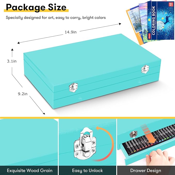 • 🎨【Well Packed in Gift Box】All the art supplies are well organized in a nice wooden case and then a beautiful gift box. Easy to carry and use in school, office, travel or at home. Ideal Arts and Crafts Gift Box for adults and kids, teens, girls, boys ages 6 7 8 9 10 11 12. Great Gifts for Christmas Gift, Birthday Present, Children's Day, Mother's Day, Easter Day, Valentine's Day,