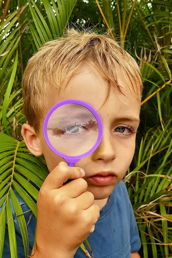 • 🔍LARGE MAGNIFYING GLASS - 3 x magnification for examining plants, insects and rocks. Wonderfully fun for camping trips and outdoor or indoor investigations. SAFE Non Choking pealess FOX WHISTLE - great for hiking, scouting, sports, games and safety locator. Clip on thick lanyard to be worn around the neck for quick access for signaling location or emergency use.