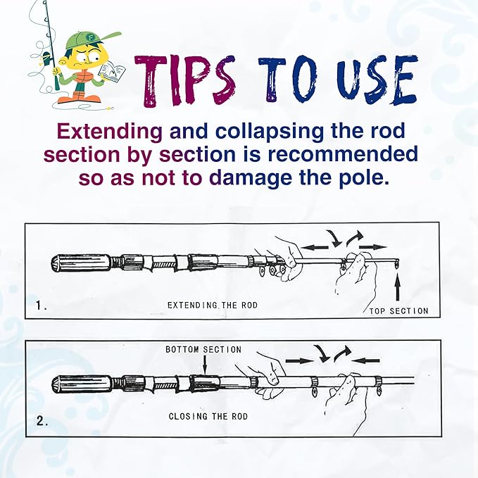 • Convenient Portability: Our collapsible fishing rod makes it easy to transport and store, and you can pack all your fishing accessories into one fishing bag, and you can take them wherever you want, and the fishing bag also provides added protection while on the go. Tips: Extending and collapsing the rod section by section is recommended so as not to damage the pole