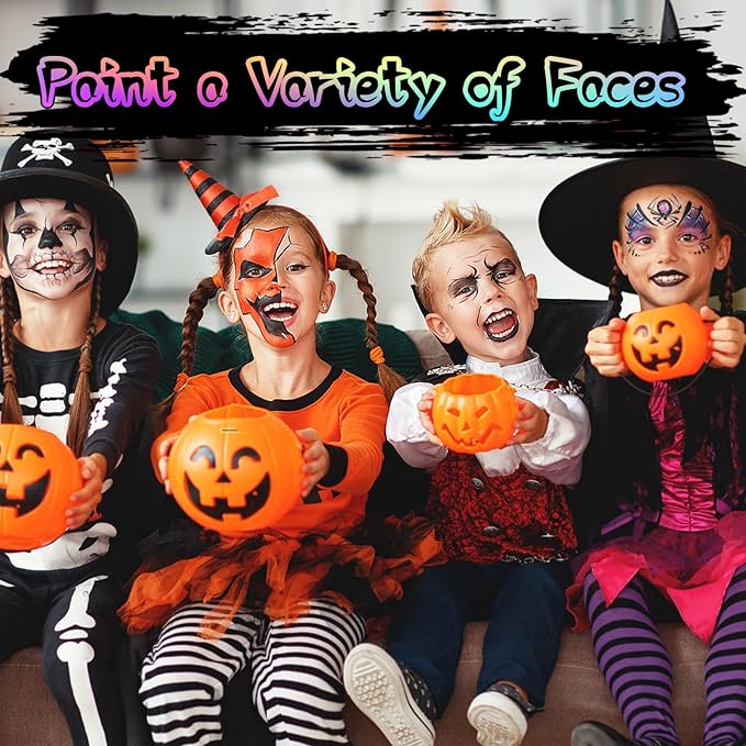 Face Painting Kit for Kids, 24 Colors Washable Face Paint, Safe for Sensitive Skin, Non-Toxic Professional Face Painting Kit, Halloween Birthdays Makeup Set with Stencils, Guide Book