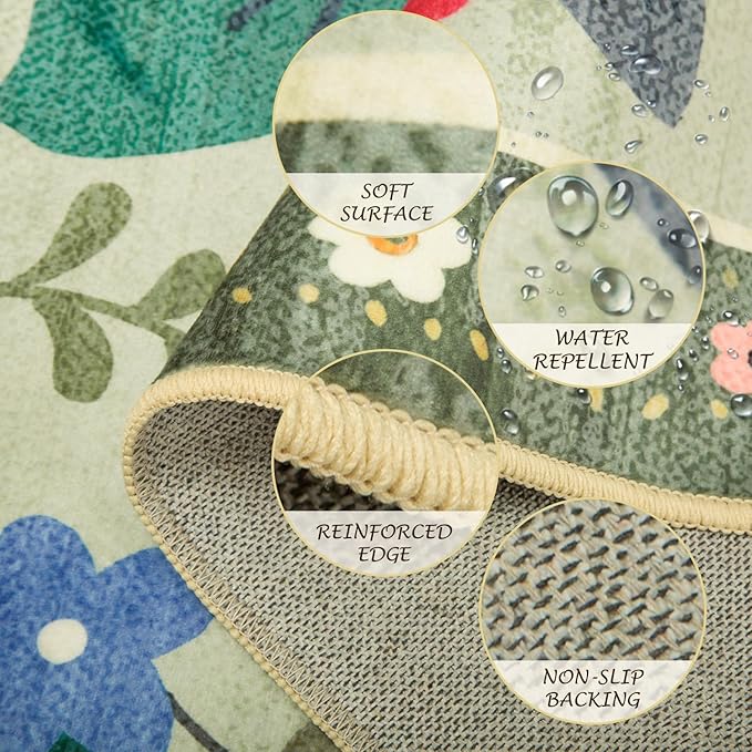 • Machine Washable:The bedroom rugs are machine washable,allowing for both machine wash and hand wash options.It is recommended to wash them in cold water.This floral rug is crafted with a low pile that won’t block opening and closing doors, make machine wash possible.Small stains can be blotted with a rag,soft-bristled brush,vacuum,or robotic vacuum cleaner.Avoid using bleach and high-temperature ironing