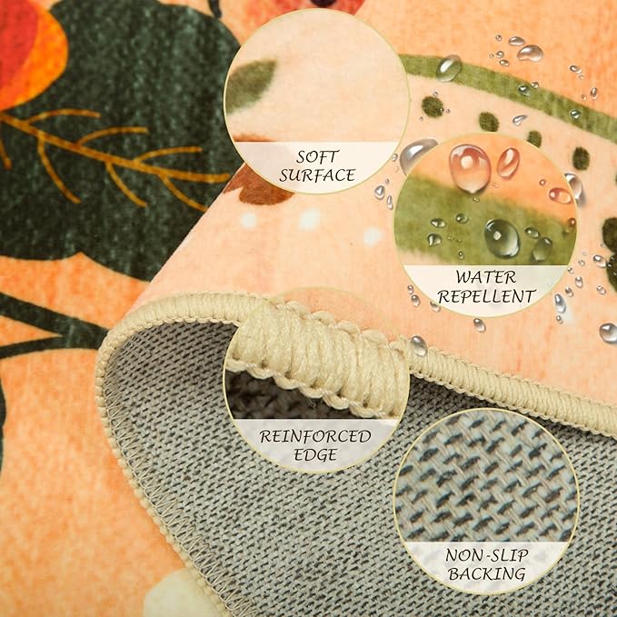 • Machine Washable:The bedroom rugs are machine washable,allowing for both machine wash and hand wash options.It is recommended to wash them in cold water.This floral rug is crafted with a low pile that won’t block opening and closing doors, make machine wash possible.Small stains can be blotted with a rag,soft-bristled brush,vacuum,or robotic vacuum cleaner.Avoid using bleach and high-temperature ironing