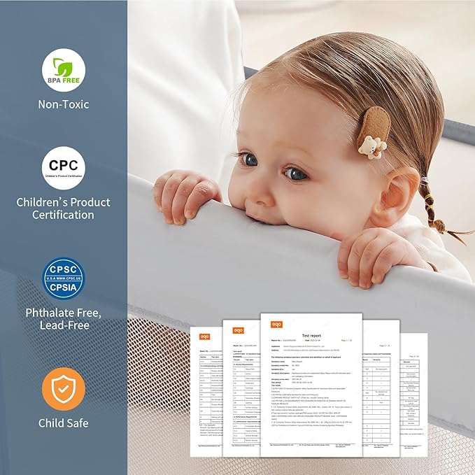 • [HEALTHY & PORTABLE]: Constructed with high-quality, non-toxic materialsβ€”including sturdy steel frames and easy-to-clean Oxford clothβ€”this portable baby play yard folds effortlessly for travel, allowing you to take it wherever you go while ensuring your child’s safety and comfort.