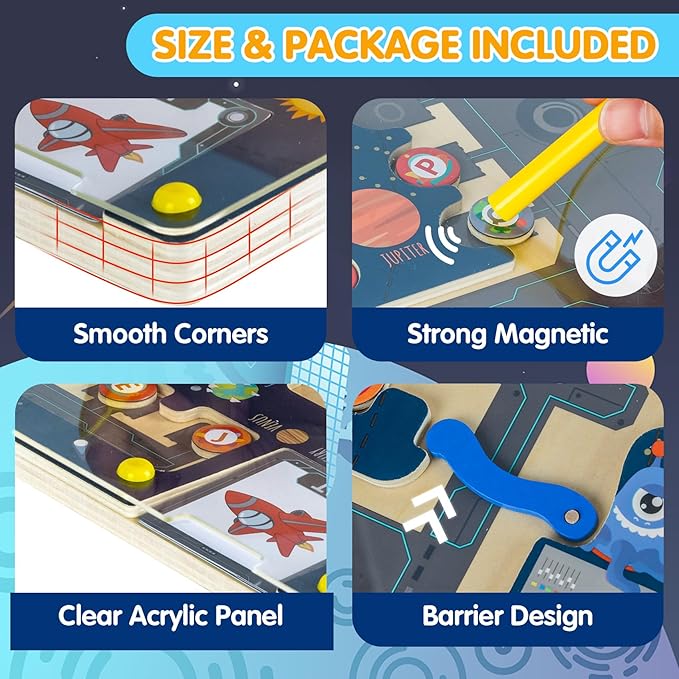 • DURABLE & SAFE MATERIALS: The magnetic alphabet maze letter puzzle is made from high-quality wood and featuring a clear acrylic panel to keep sturdy and safe. The acrylic panel effectively prevents direct contact with the magnetic beads, reducing the risk of swallowing and ensuring a worry-free playtime.
